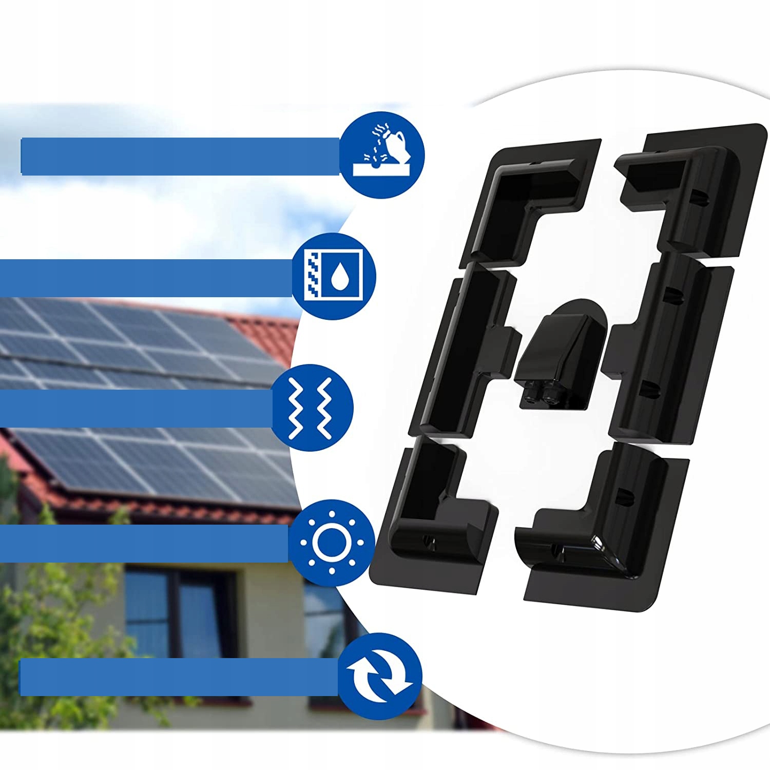 ☀ Несколько защиты монтажных кронштейнов до солнечных батарей: из прочного, устойчивого к ультрафиолетовому излучению и экологически чистым структурным материалам ABS. Используемые в качестве лобового стекла, его края и четыре угла могут защитить солнечную панель от повреждения. Водонепроницаемые кабельные дроссели используются в солнечных проектах во время процесса кабеля, два размера резиновых колец, кабель больше не ослаблен, а фиксирующая головка больше не является свободной