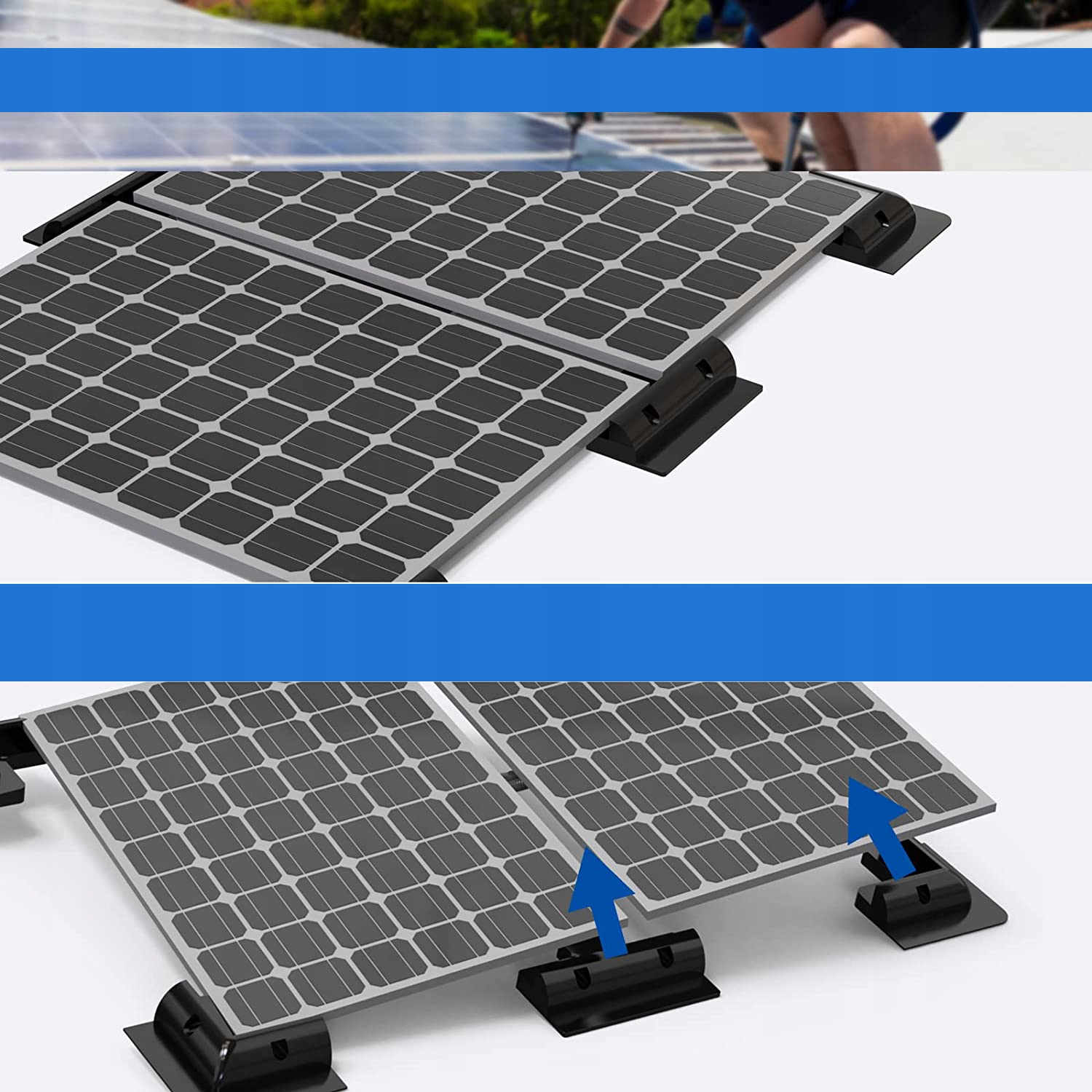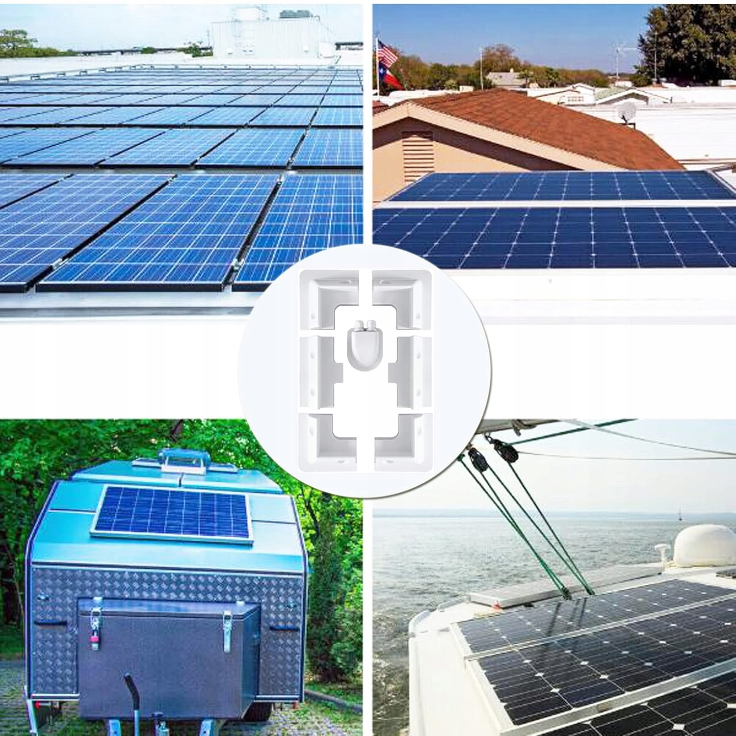 ☀ Караваны, крыши, автомобильные маски, гараж, сараи, палубы или другие плоские поверхности. Сильная боковая поддержка для малых и больших солнечных панелей