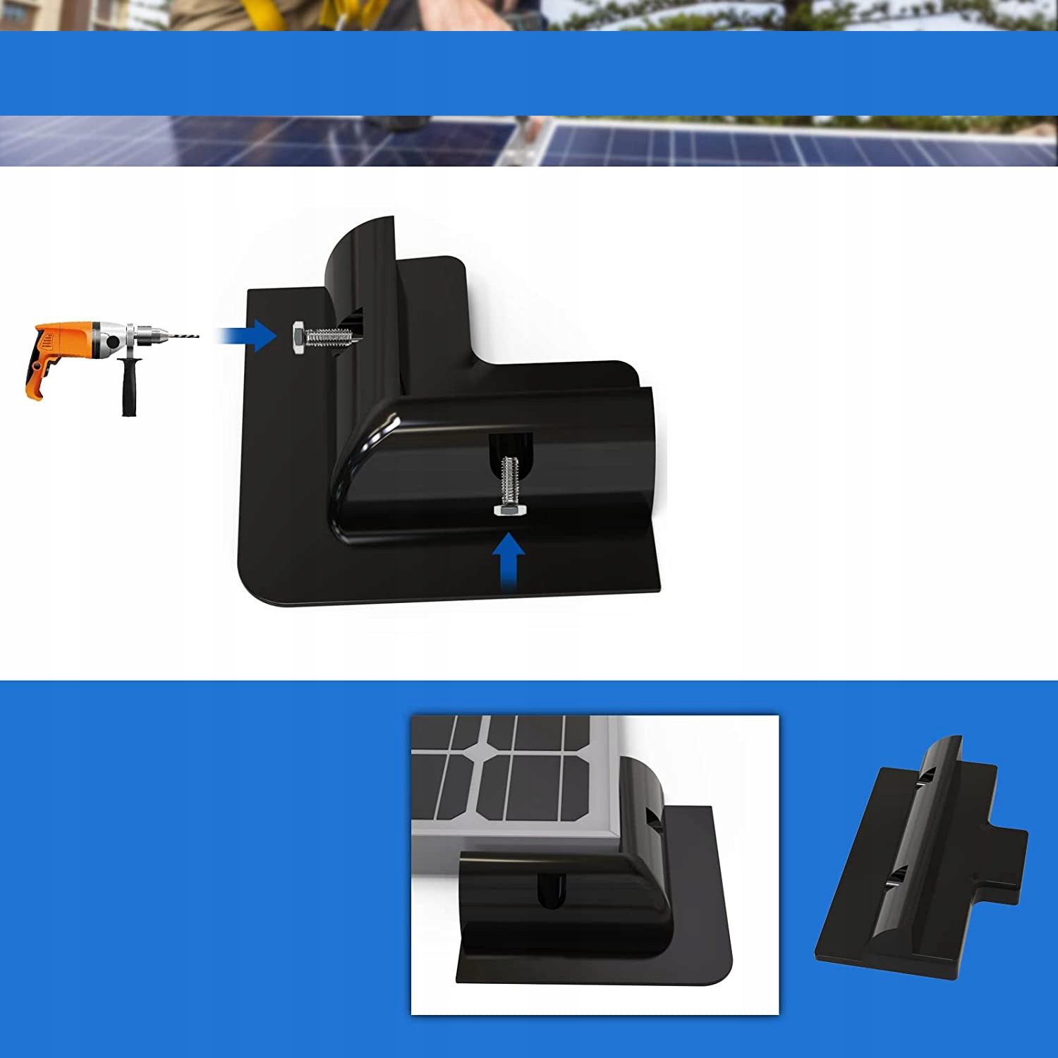 ☀ Что вы получите: 4 угловые монтажные кронштейны, 2 боковые сборочные кронштейны, 1 водонепроницаемая входная железа для солнечного кабеля