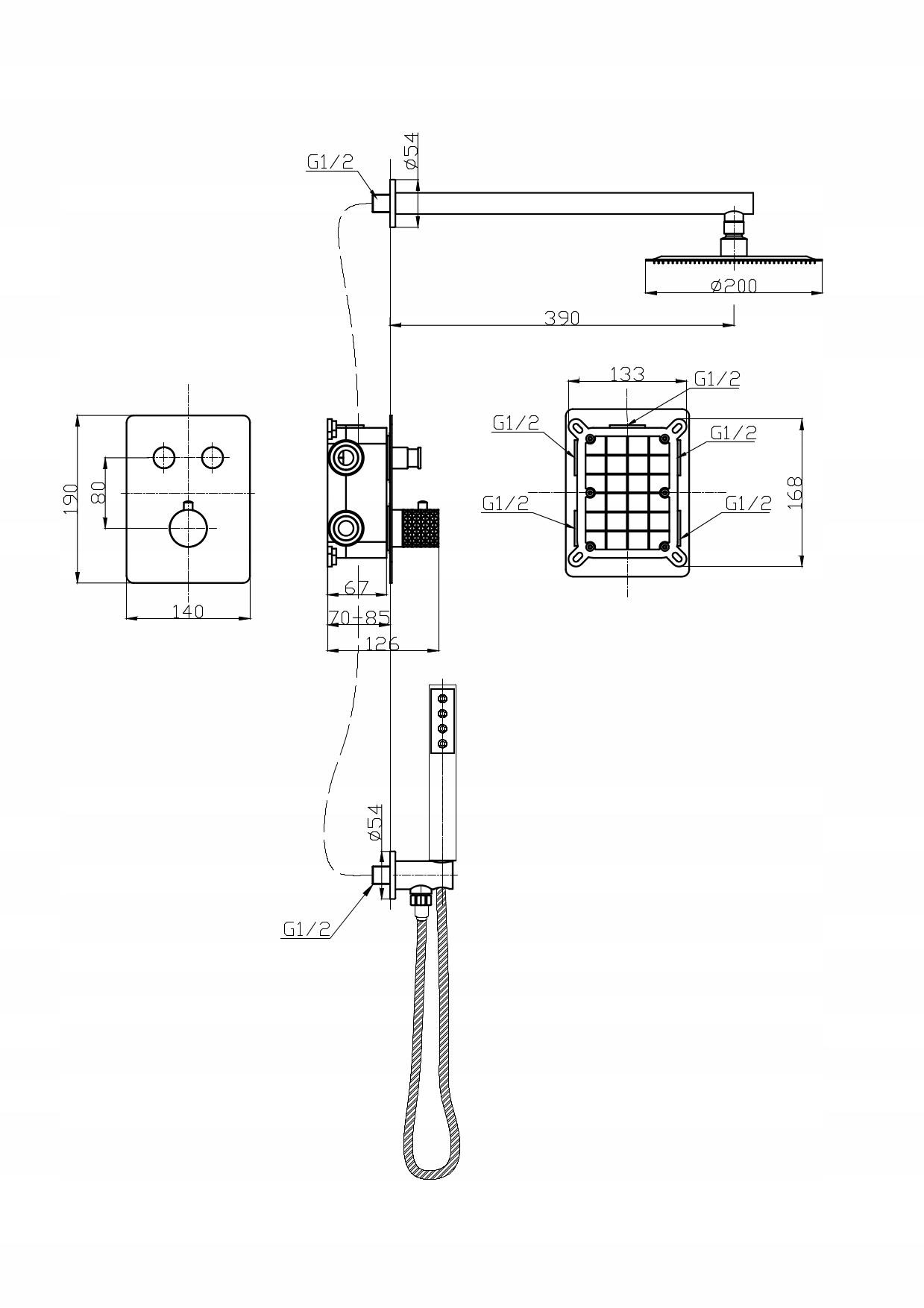 Смеситель для душа скрытого монтажа OVE BLACK, круглый тропический душ, черный