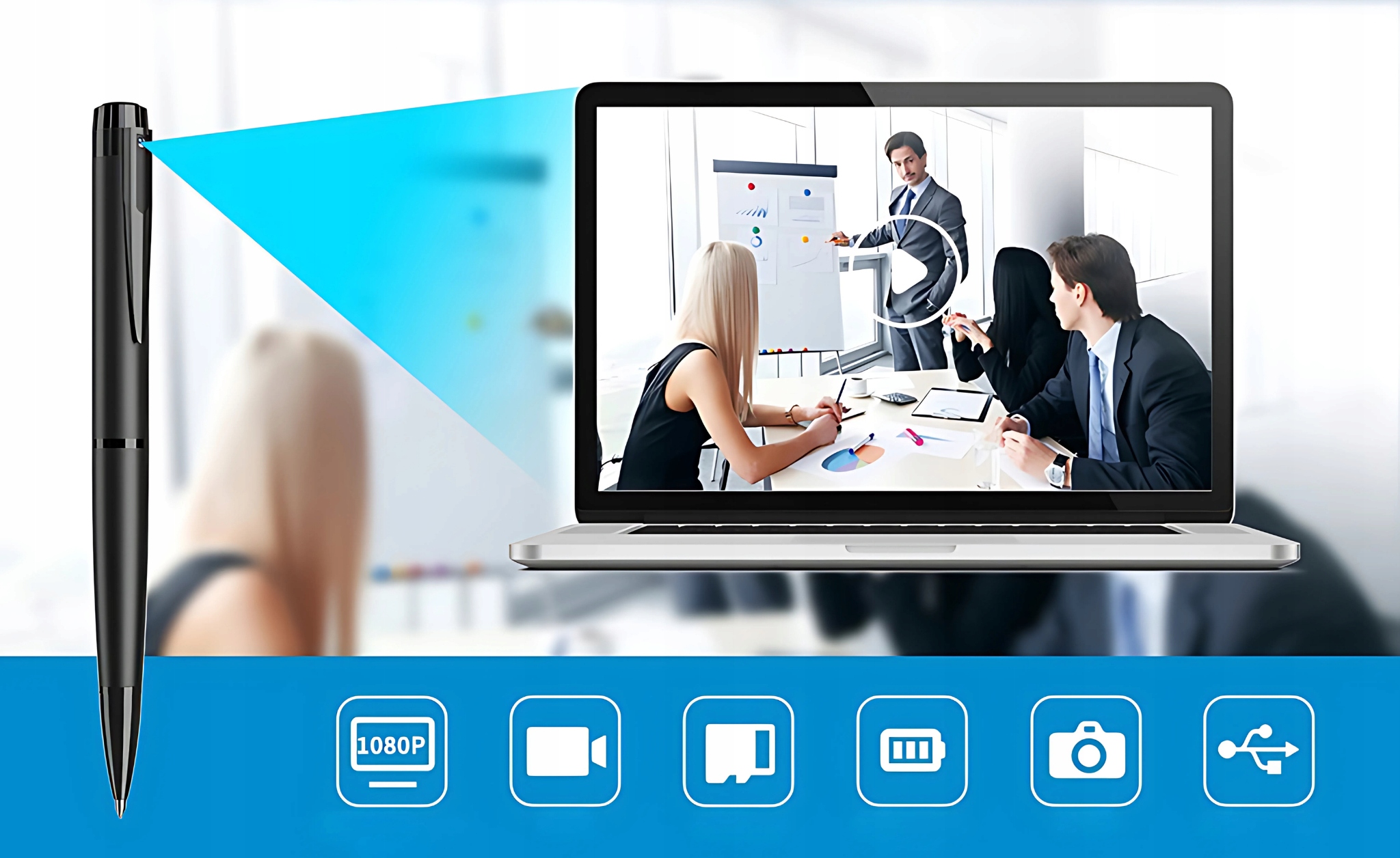 скрытая мини -камера со звуковой шпионской ручкой Full HD h1>