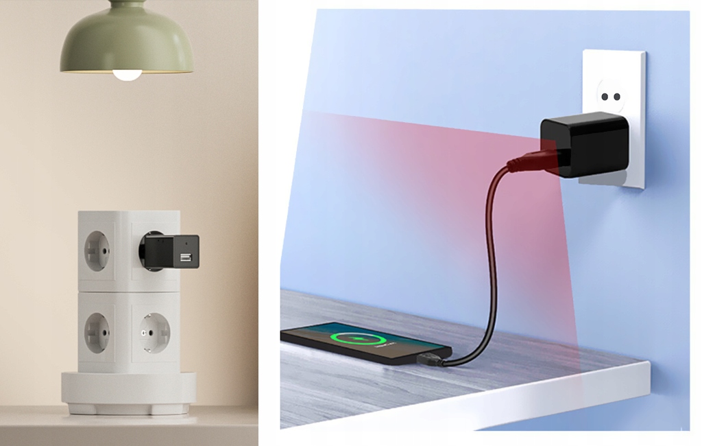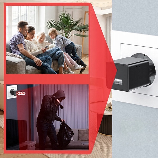 Напоминает обычное зарядное устройство, невероятно маленькая скрытая линза в виде небольшого отверстия.