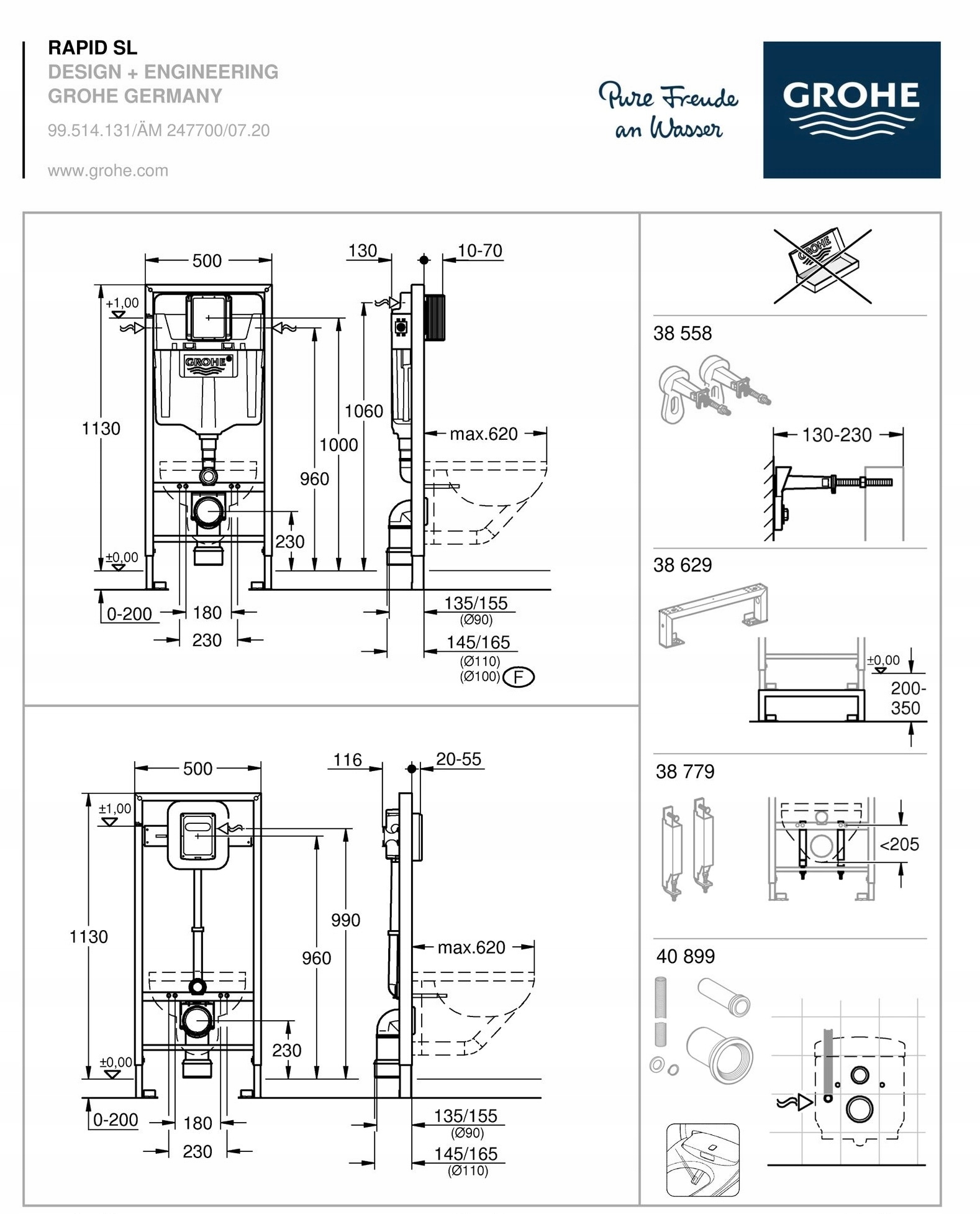 - SOLIDO RAPID 2в1 скрытого монтажа, сталь рама GROHE для облегченной конструкции; высота: 113 см, ширина: 50 см, монтажная глубина: 13–23 см.