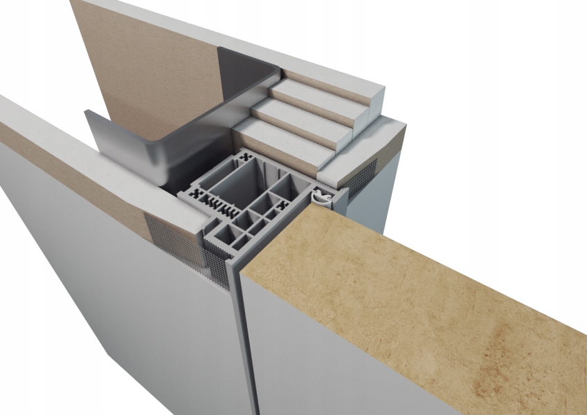 - композитная дверная коробка, идеальна под покраску после обезжиривания, невидима после установки, для встраивания в проем или для обработки гипсокартоном. После обработки кладки виден только вырез дверной коробки.
