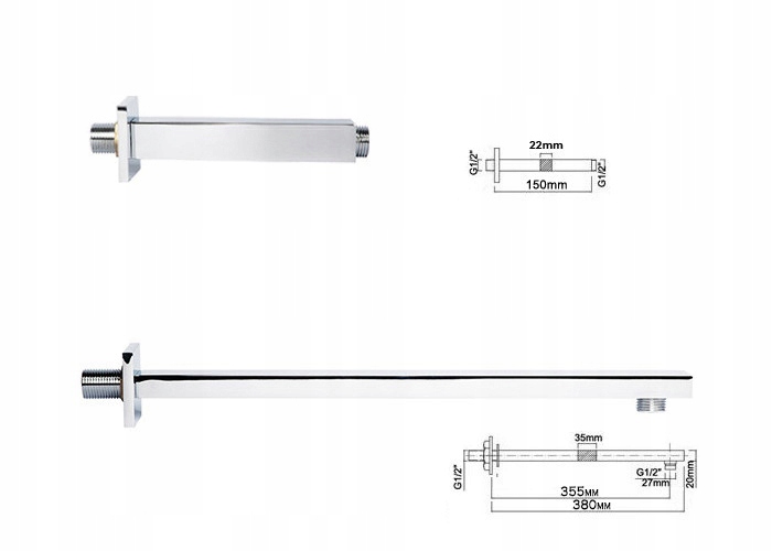 Квадратный кронштейн, настенный или потолочный с резьбой 1/2 дюйма. Рукоятка изготовлена из хромированной латуни. Конструкция кронштейна позволяет использовать тропический душ максимальными размерами 40х40см.