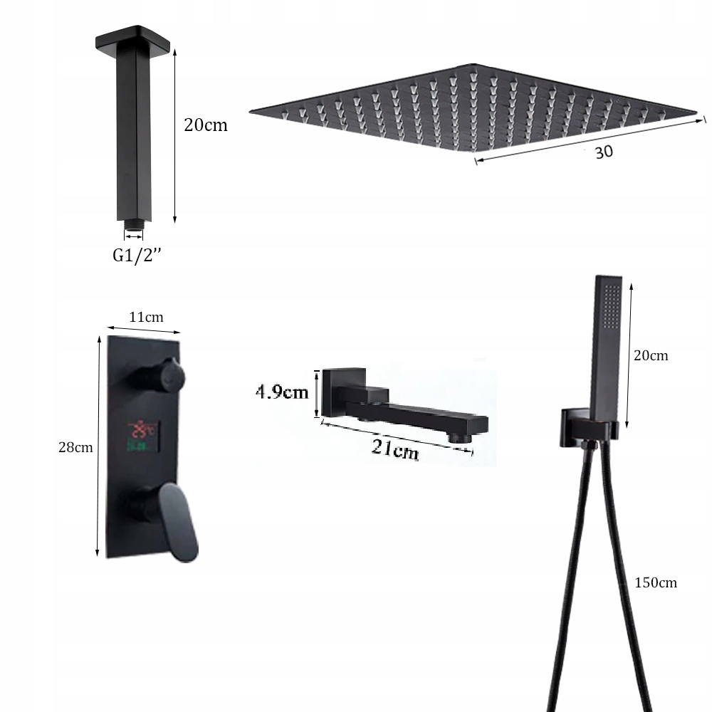Душевой набор скрытого монтажа черный - Black Mat 30