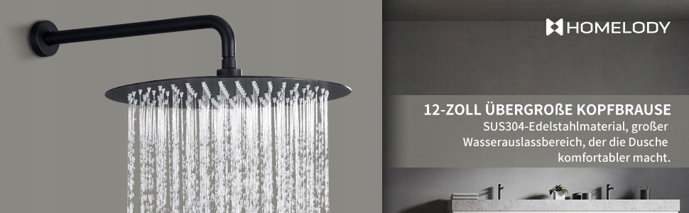 Увеличенная металлическая душевая насадка и ручной душ: 12-дюймовая круглая струя из нержавеющей стали SUS304, большая площадь выхода воды, что делает процесс принятия душа еще более приятным. ② Верхний носик диаметром 12 дюймов можно чистить вручную, чтобы избежать засорения, что соответствует потребностям разных групп людей. ③Душевая головка изготовлена из высококачественной латуни, которая отличается высокой устойчивостью к высокому давлению, коррозии и долговечности.