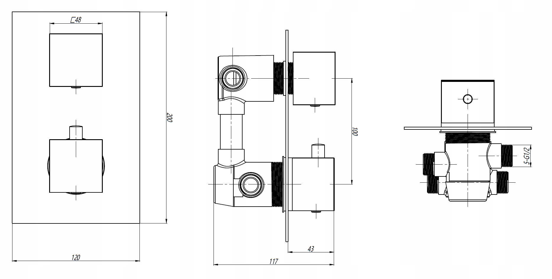 Скрытый комплект для ванны со смесителем ТЕРМОСТАТИЧЕСКИЙ