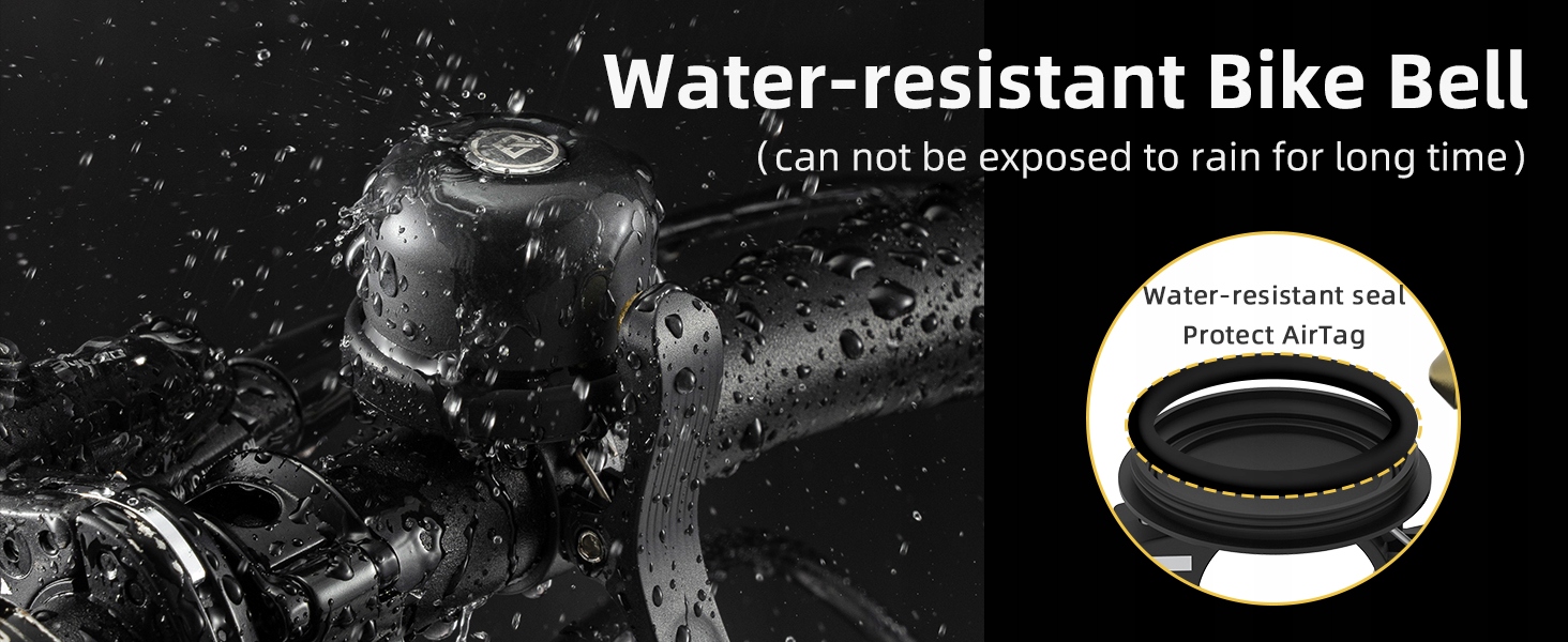 Водонепроницаемый велосипедный звонок: этот звонок поставляется с герметичным водонепроницаемым резиновым кольцом для защиты AirTag. от дождя, что делает его идеальным для езды в сырую погоду. С этим водонепроницаемым звонком вы сможете наслаждаться поездками в различных погодных условиях. Обратите внимание, что он не может подвергаться длительному воздействию сильного дождя.