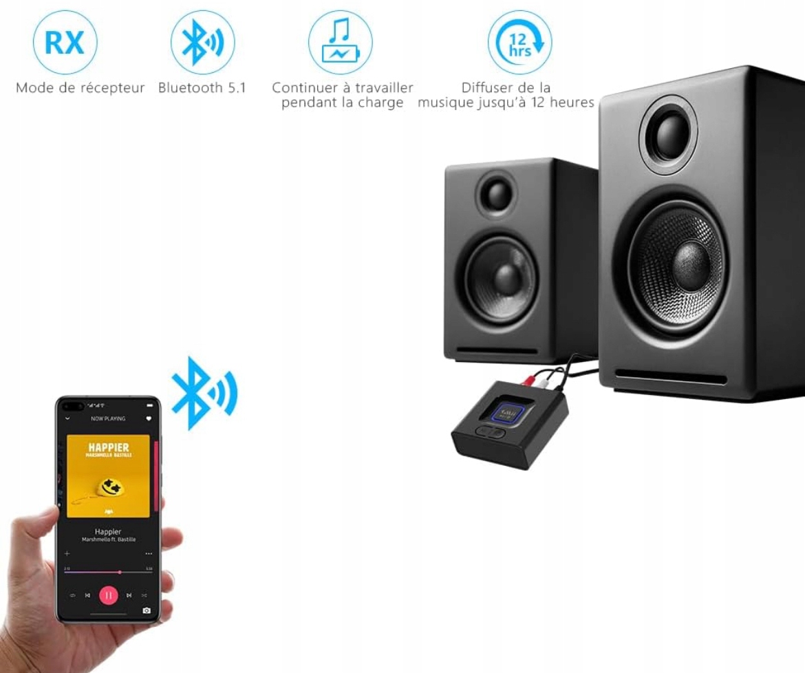 Устройство работает с большинством стереосистем, компьютерными динамиками и AV -приемниками. Идеальный дом, офис или учеба. Установите: