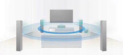 Идеально подходит для небольших помещений, технология S-Force PRO Front Surround создает виртуальное звуковое поле объемного звучания. используя только 2 динамика.