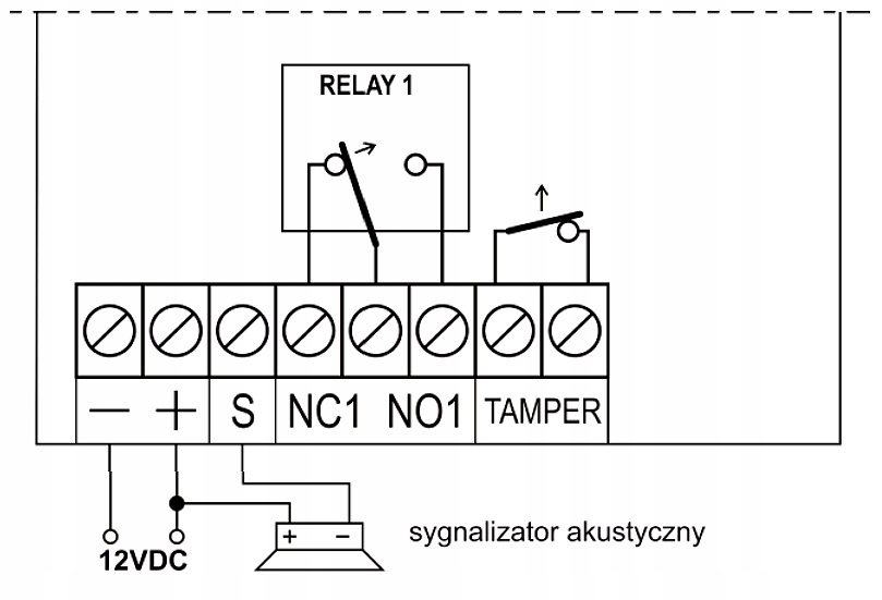 - антисаботажный выход, сигнализирующий об открытии корпуса, тип NC (короткое замыкание) -замыкается при закрытом корпусе), используется в системах сигнализации.