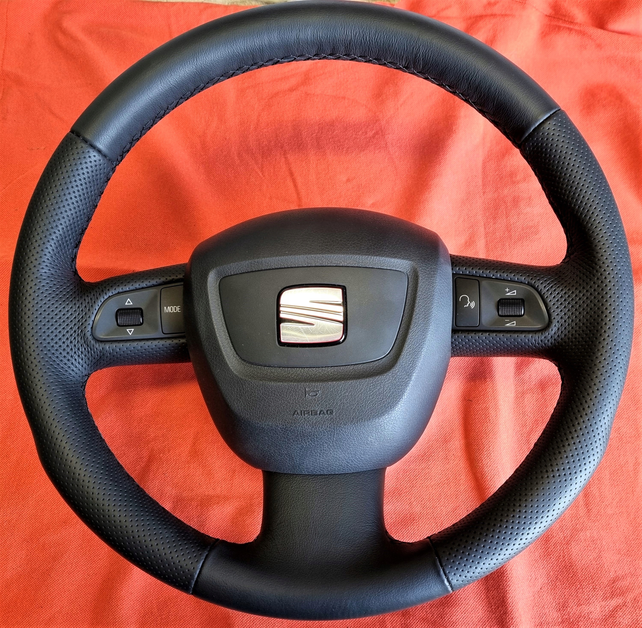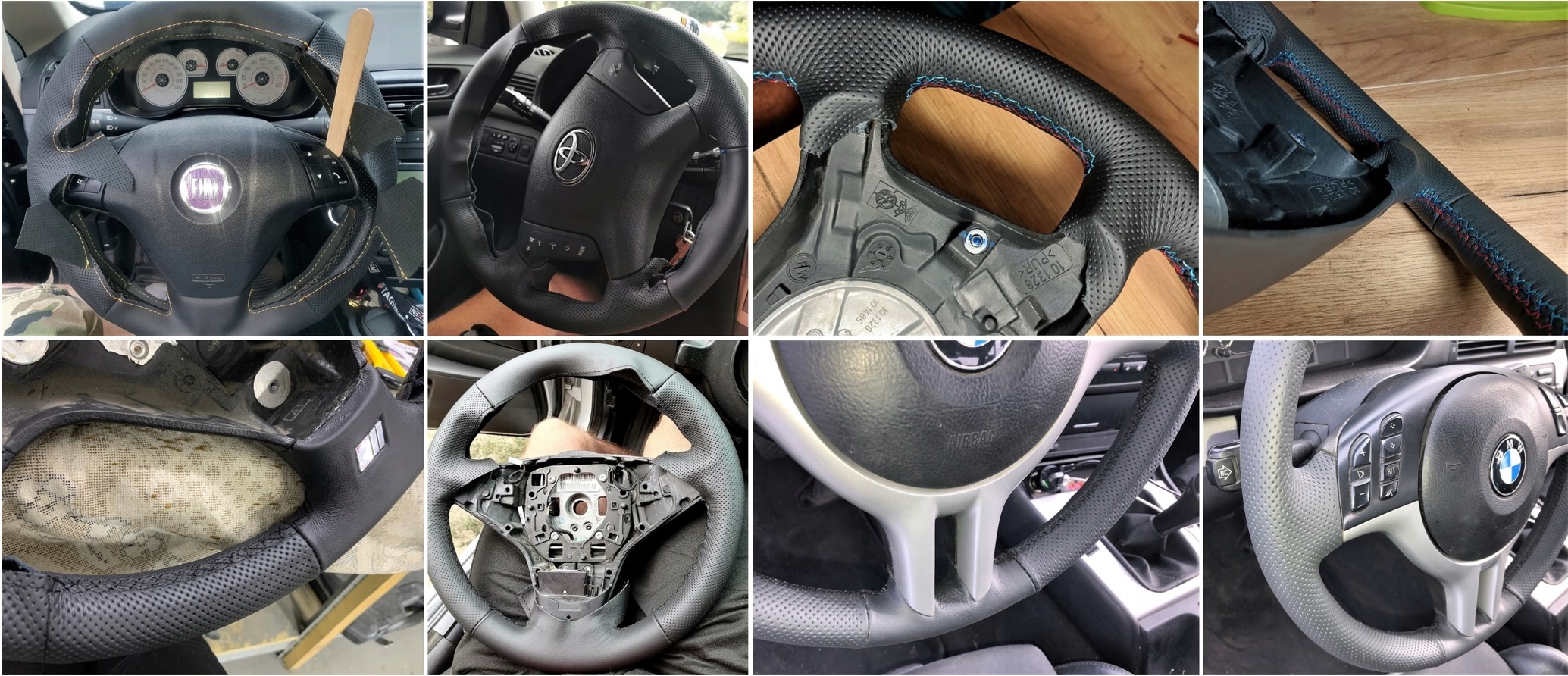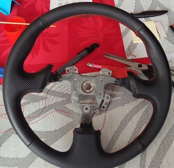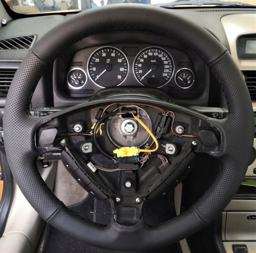 ГЛАВНЫМ ИЗДЕЛИЕМ КОМПЛЕКТА ЯВЛЯЕТСЯ ЧЕХОЛ РУЛЯ ИЗ НАТУРАЛЬНОЙ АВТОМОБИЛЬНОЙ КОЖИ, ВЫРЕЗАННЫЙ И СШИТ ПО ВЫБРАННОЙ МОДЕЛИ РУЛЕВЫХ КОЛЕС