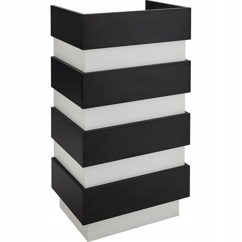 Представленная зона ресепшн небольшая. Идеально подходит для небольших гостиных. Выполнена из белой доски с черными полосками.