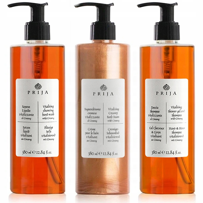 Набор косметики PRIJA, богатый всеми минералами и витаминами, необходимыми вашему телу и волосам. Благодаря использованию растительных экстрактов набор обладает регенерирующими и питательными свойствами для волос и кожи. Регулярное использование продукта ограничивает чрезмерное выделение кожного сала и регенерирует уставшую кожу. Косметика идеальна для элегантных отелей, спа-центров и апартаментов.