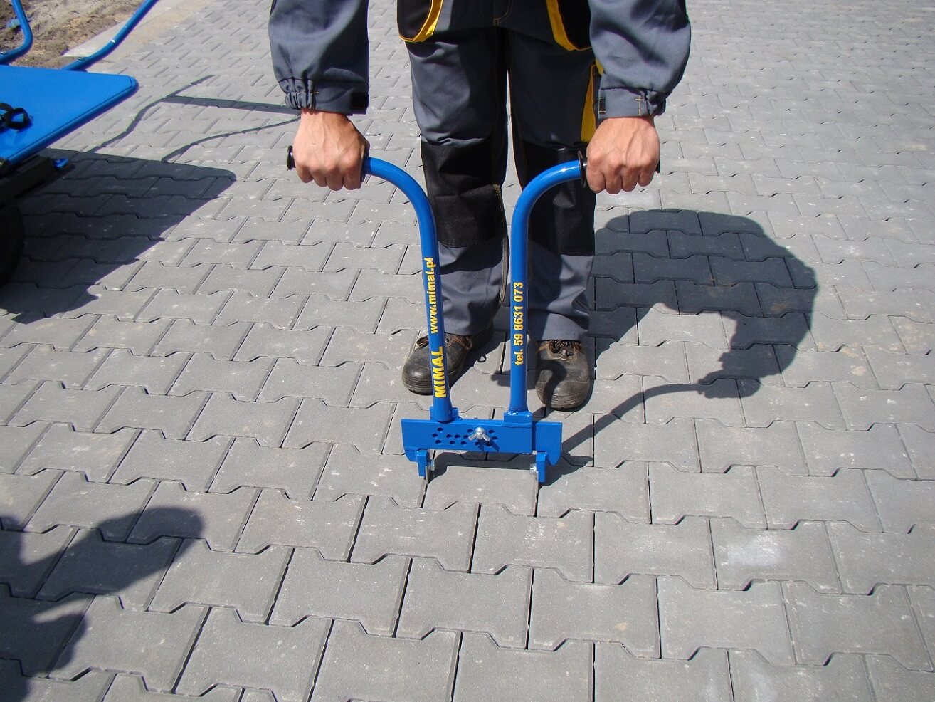 Применяется для удаления брусчатки с уже уложенной поверхности, не повреждая сам камень. Преимущество такой конструкции в том, что независимо от настройки ширины захвата ось вытягиваемого кубика всегда располагается в оси всего устройства, что существенно облегчает работу с этим устройством. Наконечники стойки инструмента (ножи) сразу же доступны в качестве запасных частей. Окрашиваемые поверхности с порошковым покрытием обеспечивают долговечность и эстетику.