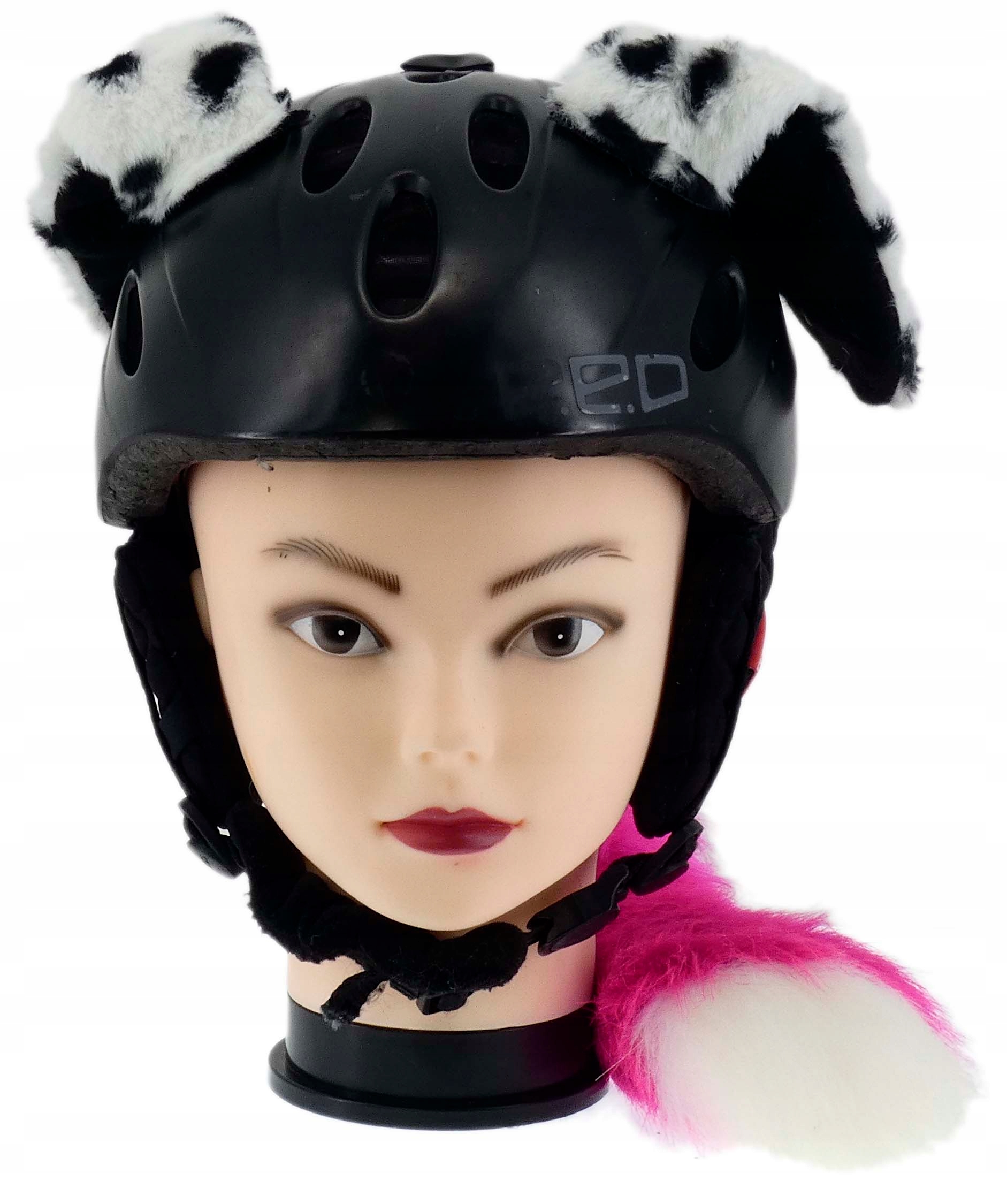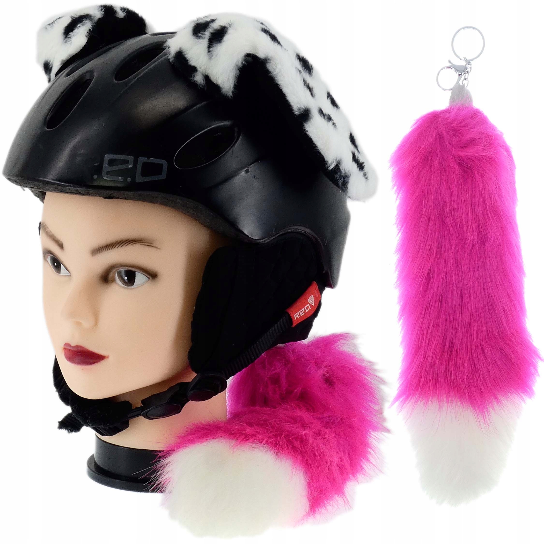 КОМПЛЕКТ УКРАШЕНИЙ ДЛЯ ЛЫЖНОГО МОТОЦИКЛОВОГО ШЛЕМА С СВЕТЯЩИМСЯ РОЗОВЫМ УШЕМ НА ВЕЛКРО