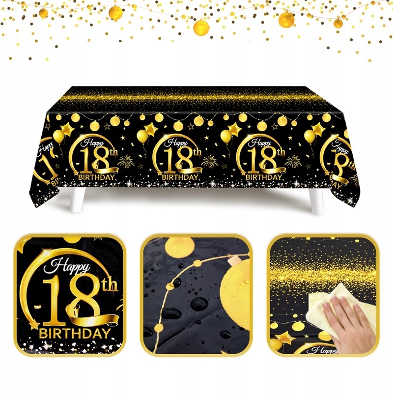 ✔ черно -золотая точка для 18 -й день рождения (220x130 см) - 1 пьеса - 10 штук