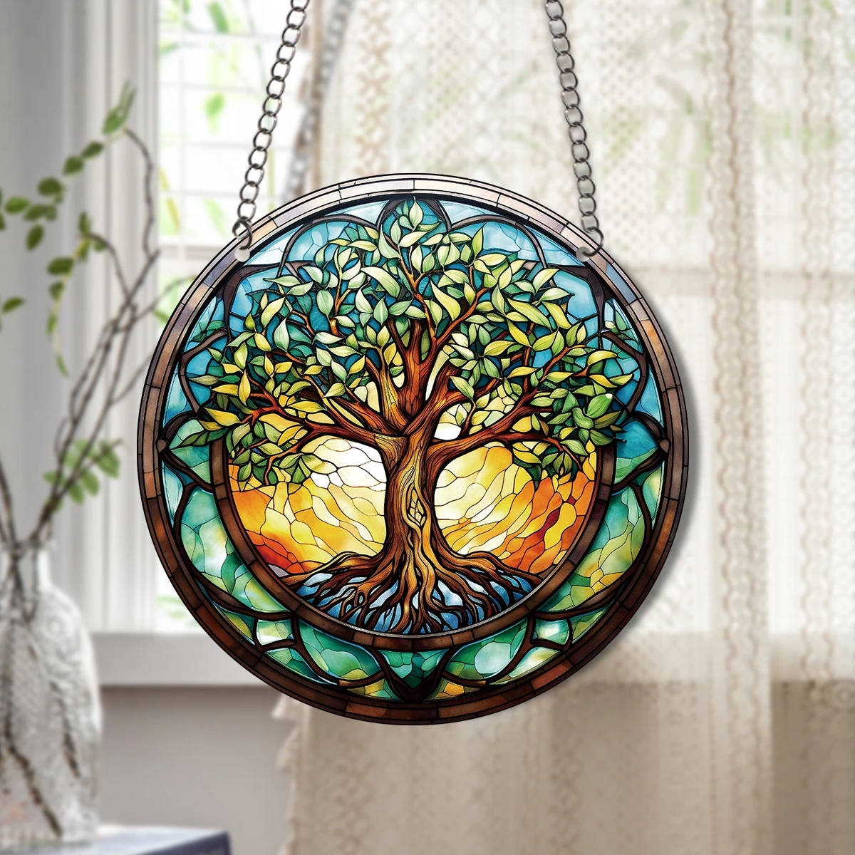 Декорація прикраса ВИТРАЖ Підвісний ДОМАШНИЙ акрил КРАСИВЕ ДЕРЕВО ЩАСТЯ XL