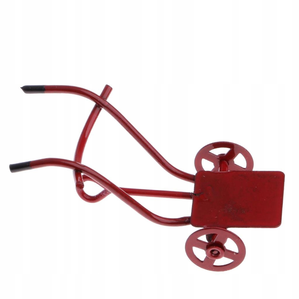 Миниатюрная садовая металлическая тележка для кукольного домика в масштабе 1/12 с ручками.