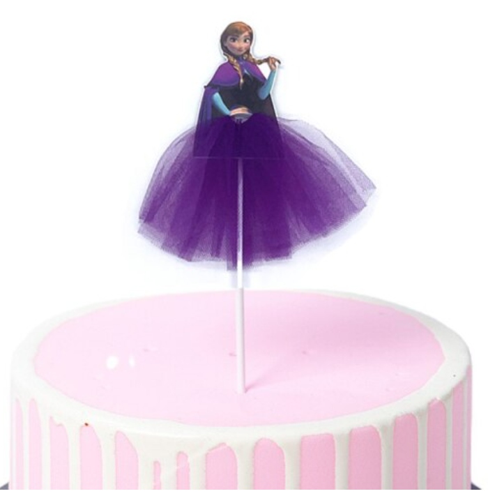 Предметом аукциона является 1 украшение для торта в виде героини сказки «Холодное сердце», видное на фото ниже, с фиолетовой тюлевой юбкой. Украшение одностороннее.
