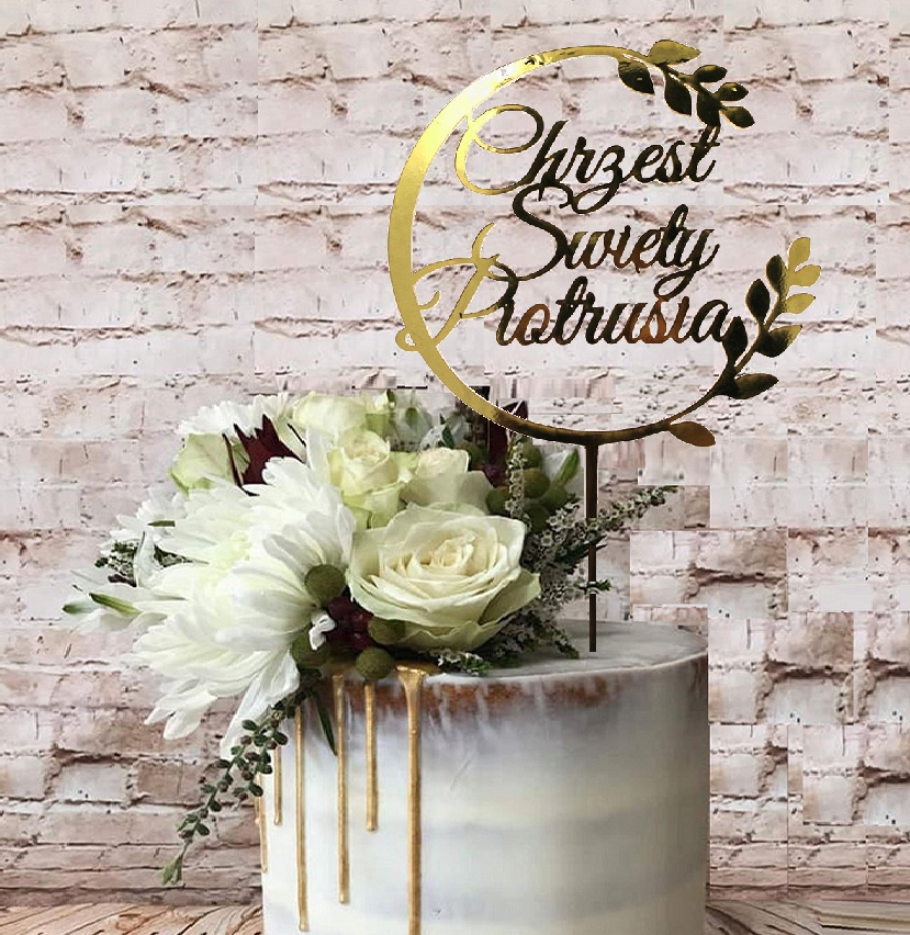 ЗОЛОТОЙ ТОППЕР украшение для торта КРЕЩЕНИЕ + ИМЯ