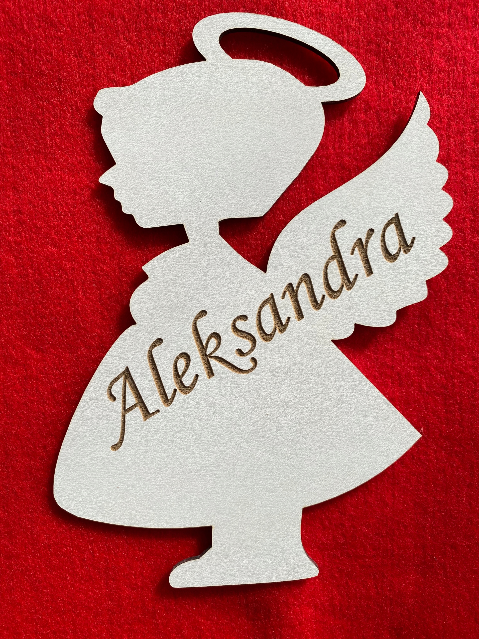Ангел из белой плиты HDF (белая лицевая сторона, коричневая задняя часть) с выгравированным любым именем.