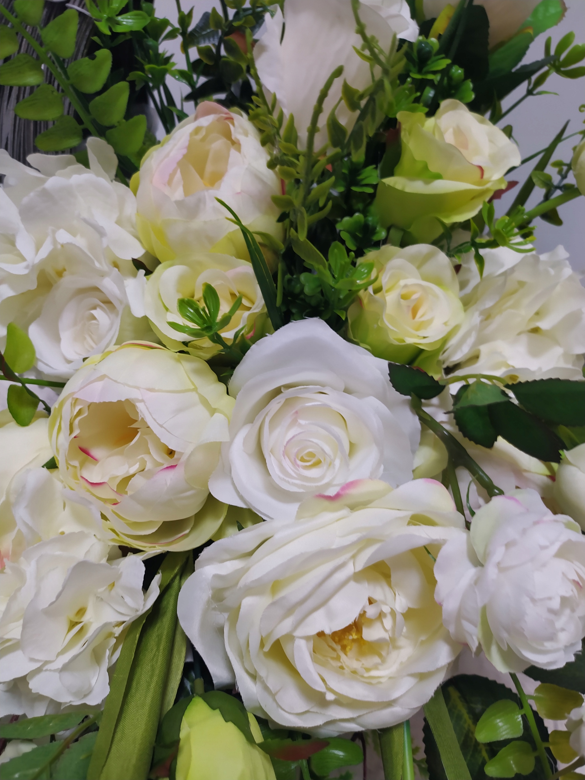 Красивое украшение на могилу "круассан" из искусственных цветов, композиция для компакт-диска с посвящением бабушке/дедушке/маме/папе (все доступные варианты видны на последнем фото). Мы сами тщательно составляем наши композиции, благодаря чему трости уникальны и в жизни выглядят еще лучше.