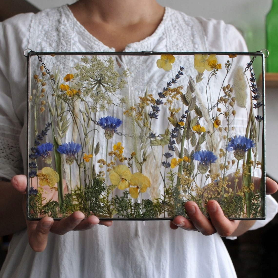 Витраж формата А4 с декором из сухоцветов и диких растений?
