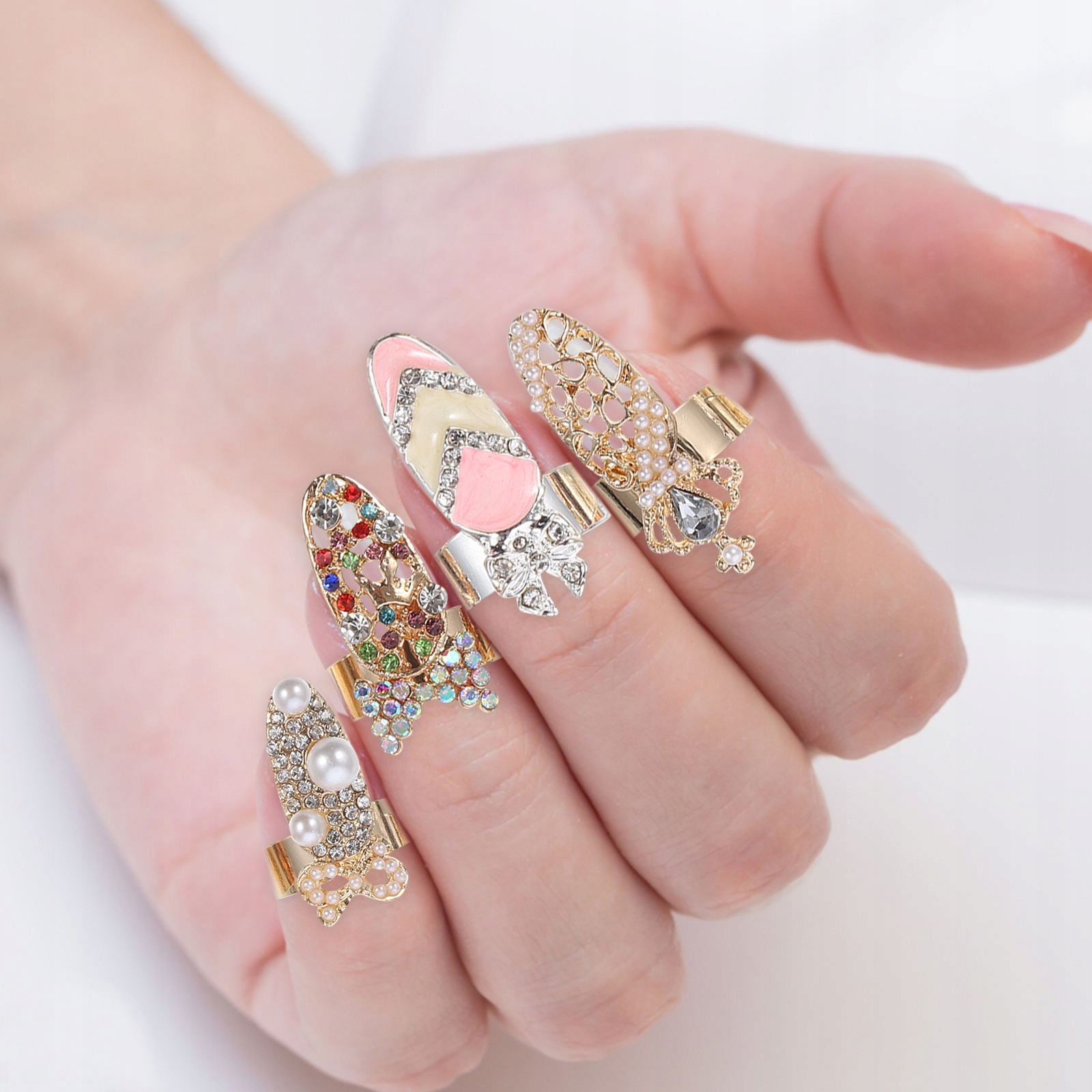 ✅Кольца для ногтей изготовлены из качественного сплава и покрыты сверху стразами. Прочные и надежные, не легко изнашиваются, стразы прочно прилипают, не отваливаются при использовании. Подходит для различных случаев, таких как костюмы на Хэллоуин, танцы, представления, ролевые игры, концерты, косплей-вечеринки.