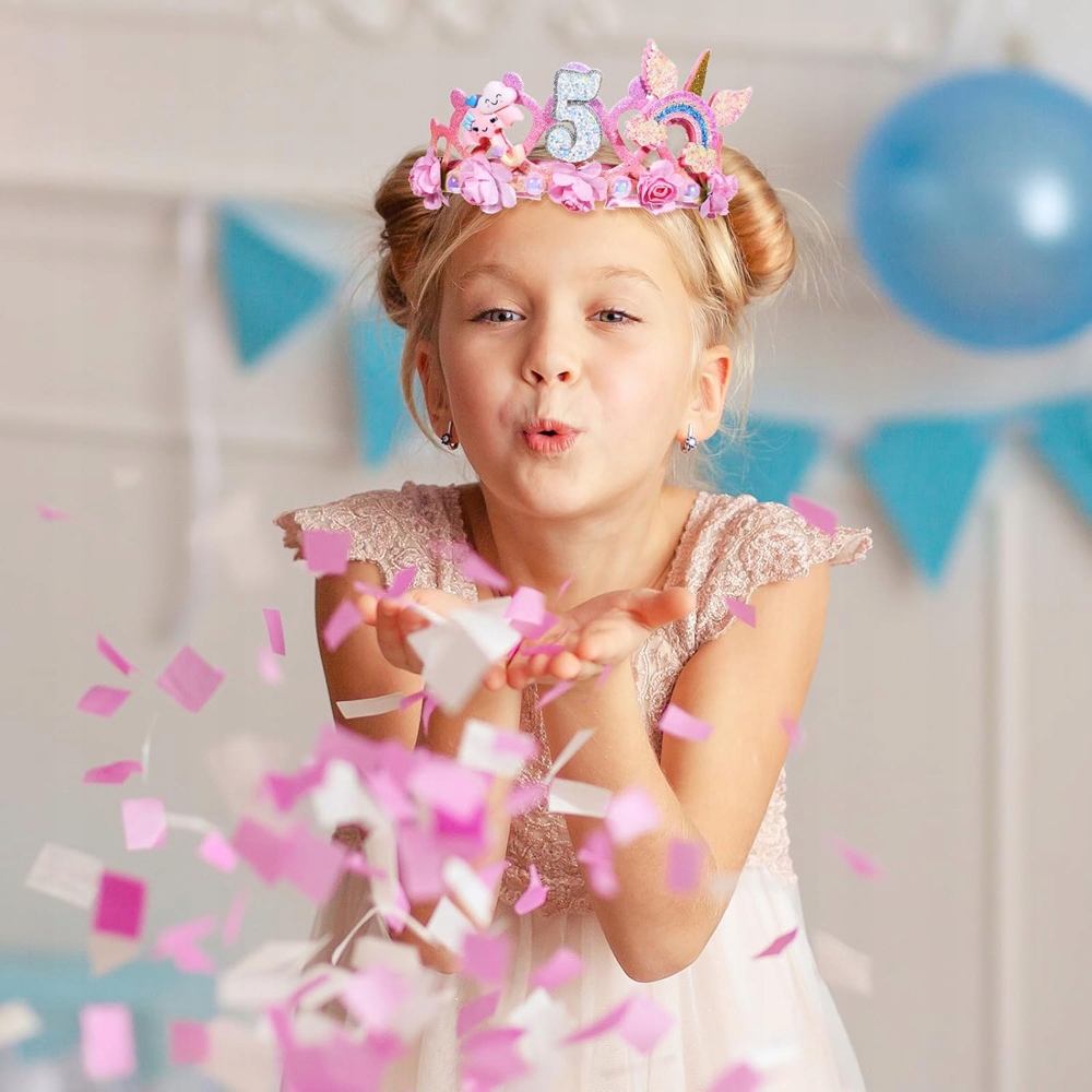 Украшения на 5-й день рождения для девочки. Повязка на голову с короной на 5-летие для девочки. Розовая повязка для волос.