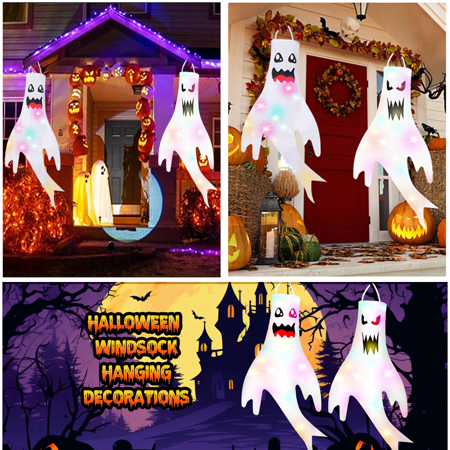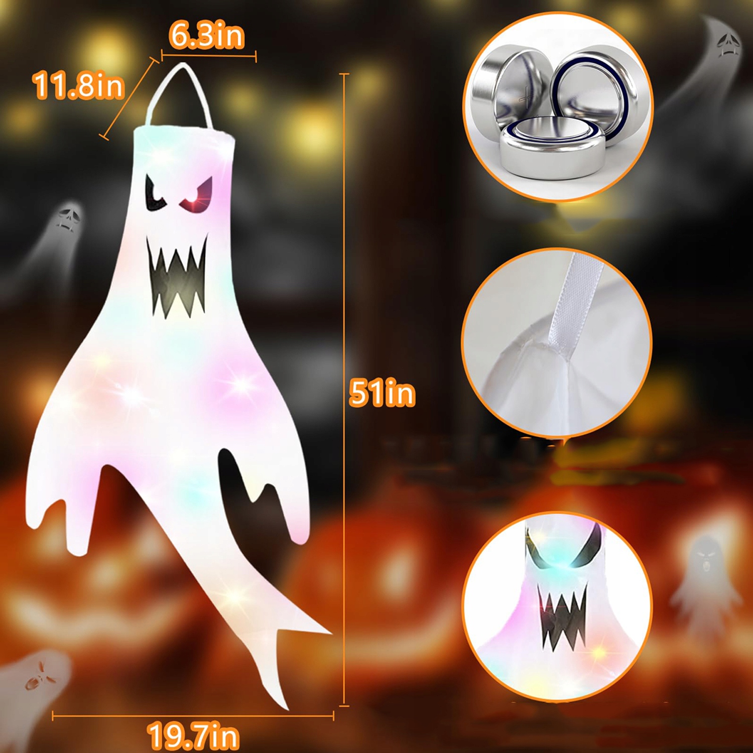 🎃🎃🎃 【【 Ультрареалистичный】 Эти призраки Хэллоуина (2 штуки, 19,7*51*6,3 дюйма) сделаны из светодиодных огней и имеют реалистичные 3D -формы! Они могут быть легко отстранены, и этот дух является обязательным элементом каждого события! Веселый Хэллоуин! Украсьте свою вечеринку за несколько минут с помощью наших украшений со светодиодными фонарями. Эти призрачные украшения Хэллоуина сделаны из долговечного, и в то же время легкая полиэфирная ткань, которая качается на ветру. Подходит для украшения садов, комнат, окон, офисов и т. Д. В сочетании с красочными, светящимися электронными лампами он может отображать светлый свет ночью, благодаря тому, что он привлекает глаз и создает праздничную атмосферу