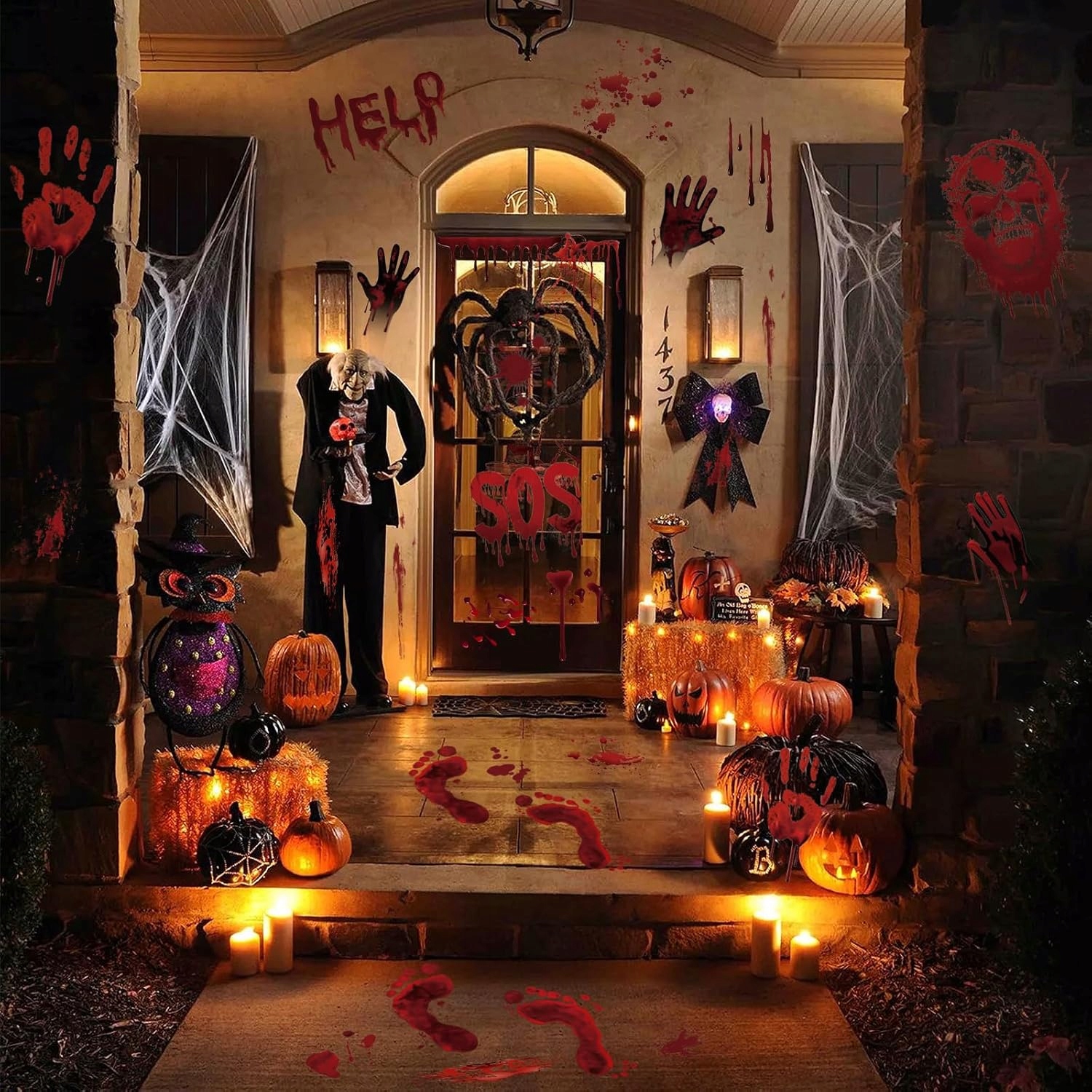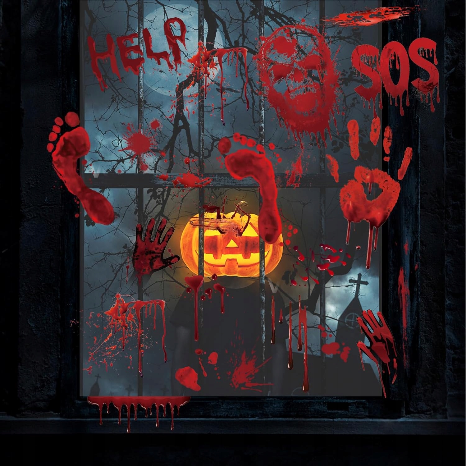 Эти реалистичные, естественные наклейки с кровавыми руками и следами, пятна крови и драматические надписи, такие как «помощь» или «соус», идеально подходят для создания ужасной атмосферы. Просто поместите их в окна, зеркала или полы, чтобы вызвать беспокойство гостей и представить атмосферу ужасов.