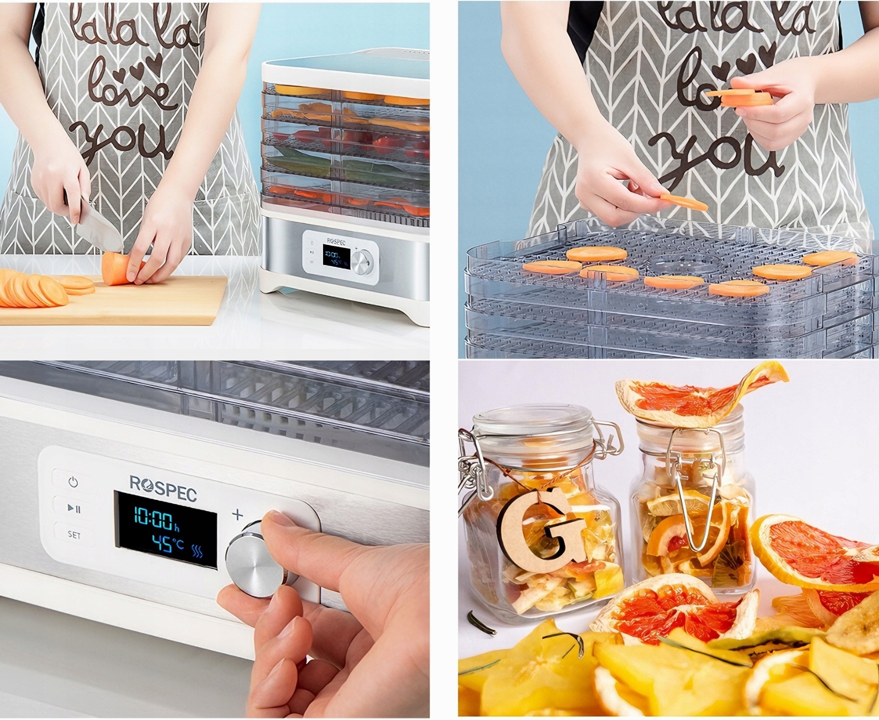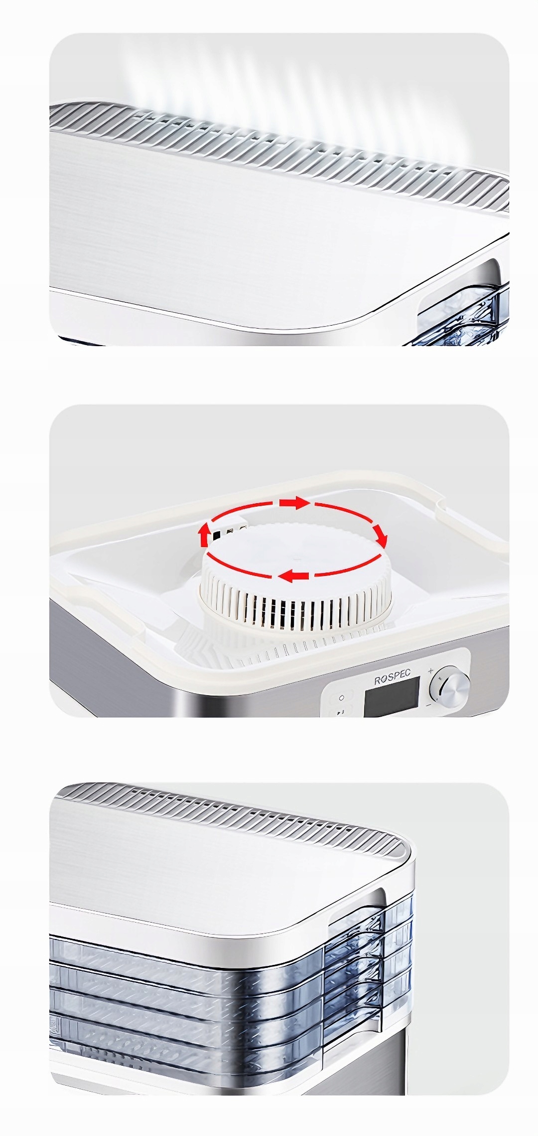 Многослойные решетки и возможность добавления дополнительных позволяют сушить больше продуктов одновременно. Это идеальное предложение для тех, кто ценит эффективность и экономию времени.