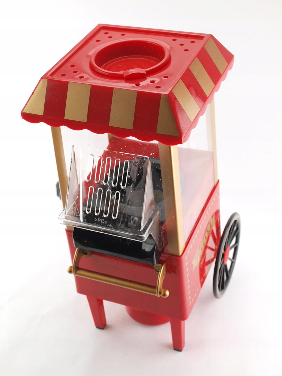 Машина проста в эксплуатации. Просто заполните верхнюю часть устройства кукурузой, и примерно через 2-4 минуты попкорн готов ;)