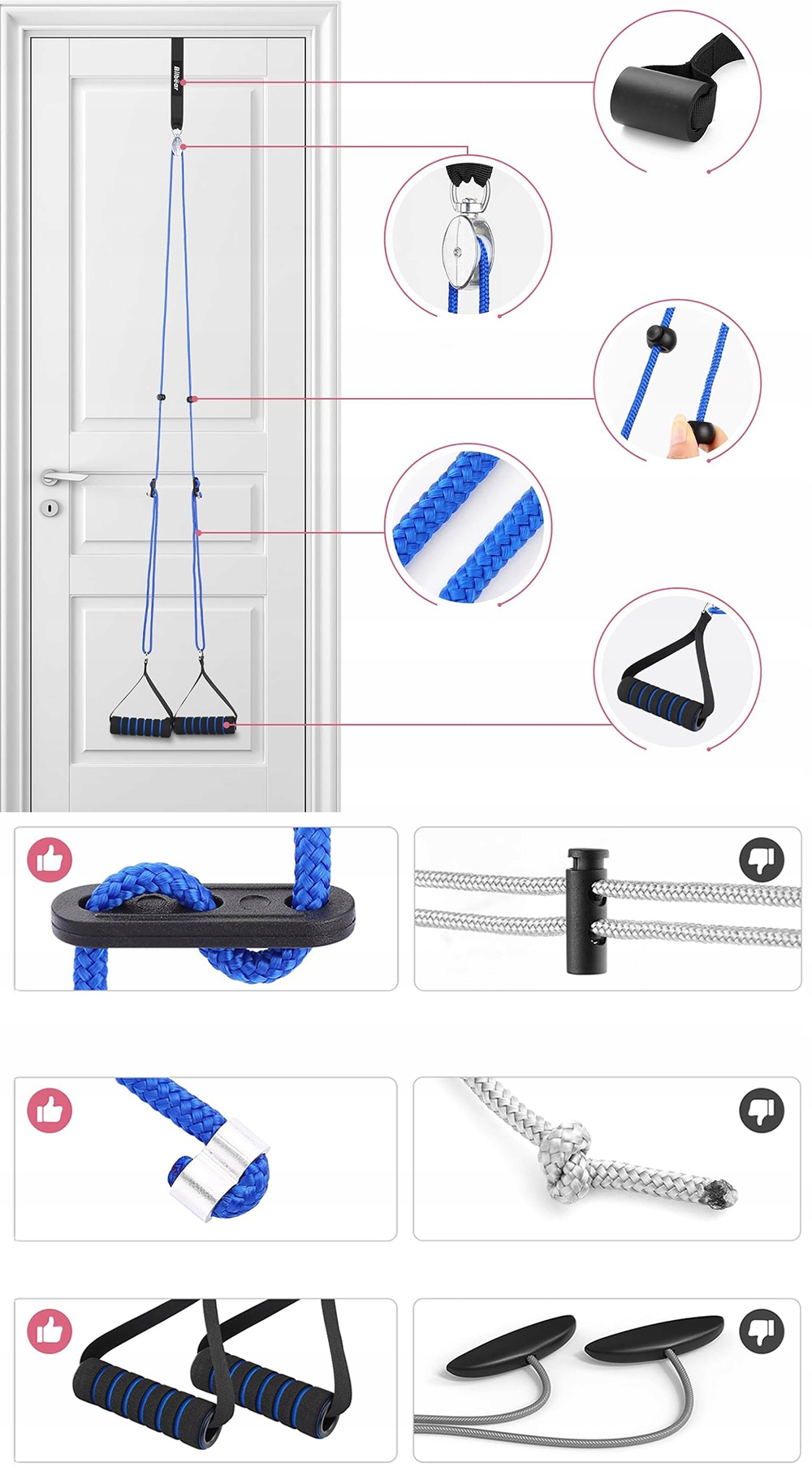 ★ Противоскользящая анкерная планка подходит для большинства дверей и защищает их от царапин. Веревка достаточно длинная, чтобы вы могли легко взяться за мягкие ручки, сидя.