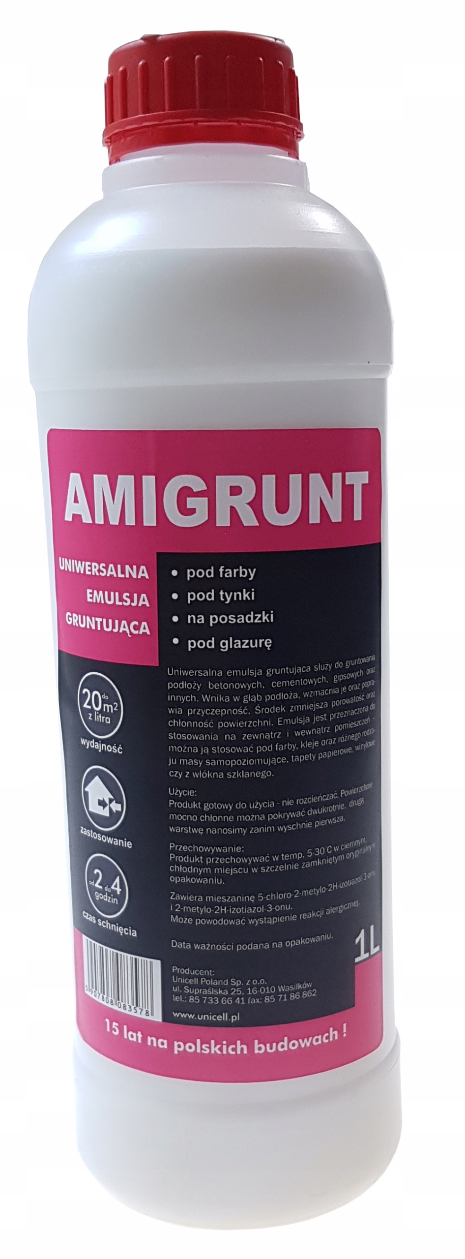 amigrunt 1l Primacol - это профессиональная универсальная эмульсия праймера, готовая к использованию сразу после открытия. Идеально идеально подходит как для помещений, так и для наружных применений, на стенах, потолках, стянках, полах и изоляционных системах.