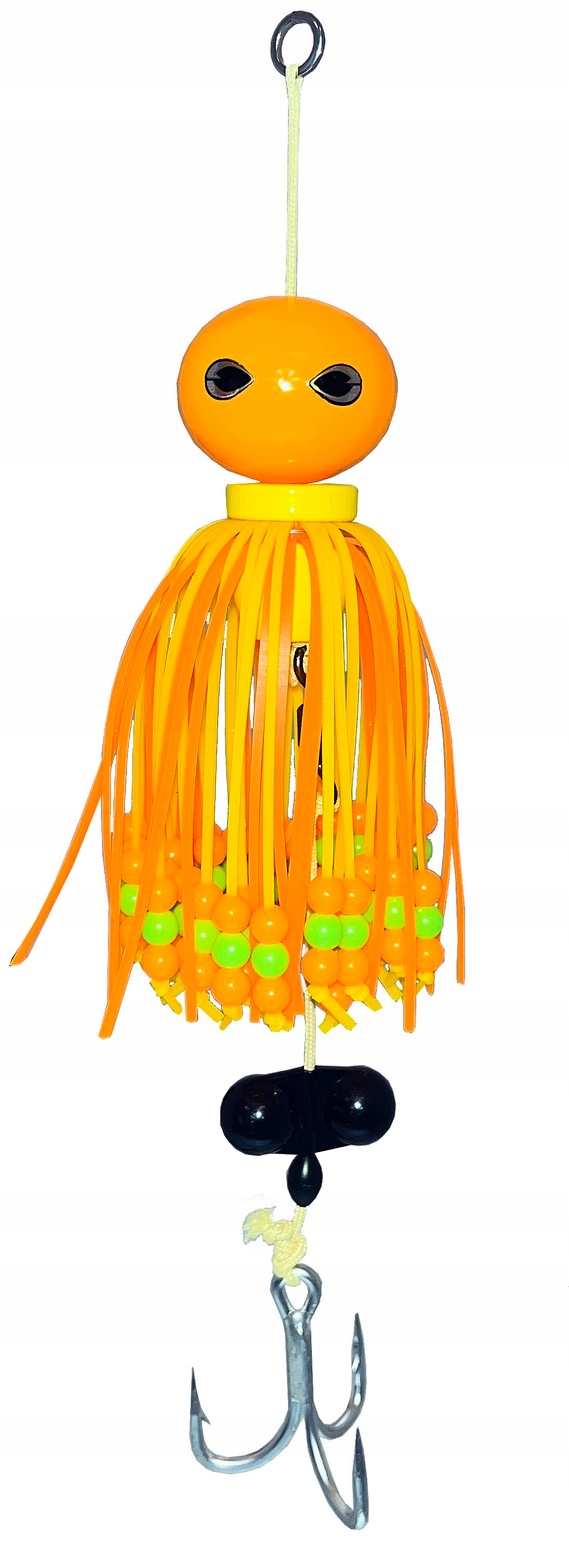 Привлекательность этой приманки зависит от правильно подобранного цвета, формы и звука, провоцирующего сома на атаку. Приманка состоит из грузила, громкой погремушки и длинных резиновых ножек с бусинами на конце. Особенно хорошо работает при использовании наседки.