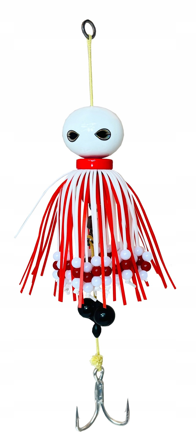 На привлекательность этой приманки влияют правильно подобранный цвет, форма и звук, которые провоцирует сома на атаку. Приманка состоит из грузила, громкой погремушки и длинных резиновых ножек с бусинами на конце. Особенно хорошо работает при использовании наседки.