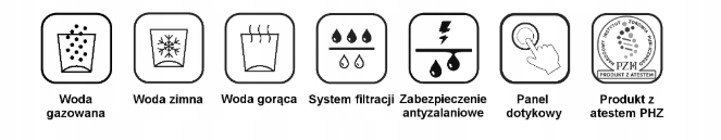 ✓ Удобство Эксплуатация - сенсорная панель со светодиодной подсветкой облегчает использование аккумулятора. Отдельные кнопки на панели для каждого из трех видов производимой воды (сверху: холодная, газированная, горячая).