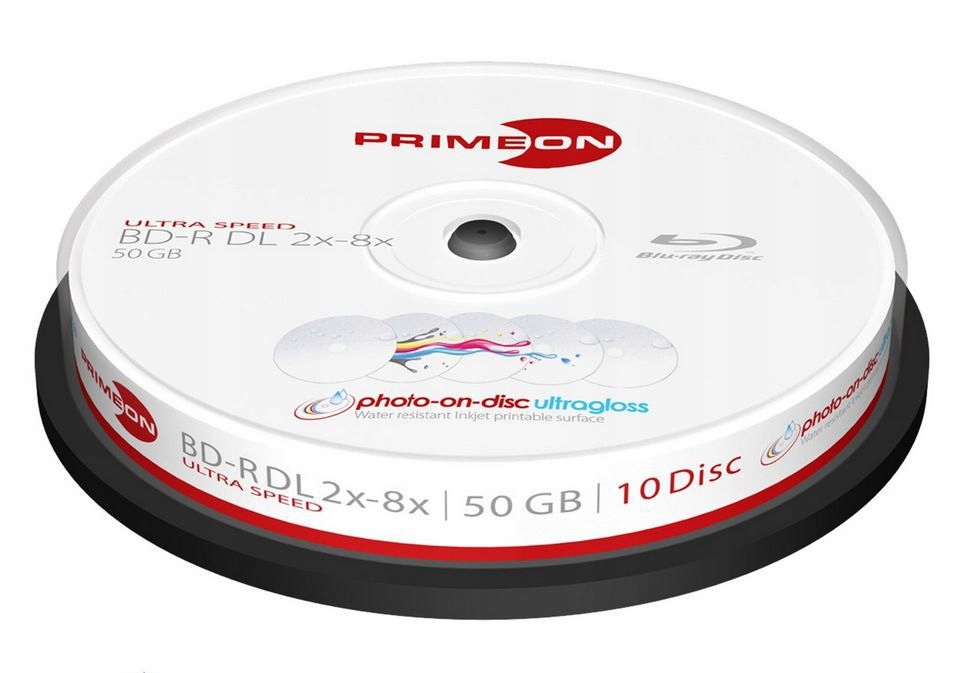 PRIMEON BD-R 50 ГБ 2–8x ГЛЯНЦЕВЫЙ ВОДОНЕПРОНИЦАЕМЫЙ БЕЗ ЛОГОТИПА ДЛЯ ПЕЧАТИ ВОДОНЕПРОНИЦАЕМЫЙ БЕЗ ЛОГОТИПА торт 10 штук.