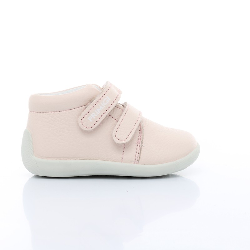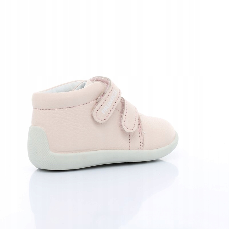 Светло-розовые туфли из натуральная кожа высочайшего качества. Обувь достаточно устойчивая и гибкая, внутренняя отделка выполнена из мягкой кожи, защищающей ногу от истирания. Усиленная пятка и подходящая высота верха обеспечивают устойчивость. Профилированная кожаная стелька формирует правильное развитие стопы. Застежка регулируется двумя ремнями-липучками. Гибкая и нескользящая подошва. Идеальная обувь для обучения ходьбе.