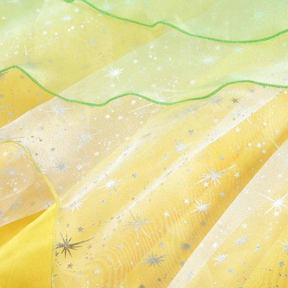 ✨ платье сделано в нежных оттенках желтых, напоминающих весенние цветы. Наряд имеет несколько слоев тюля, который добавляет громкость платье . Верхняя часть украшена блестками, а целое украшено красивым, искусственным цветом с листьями на талии.