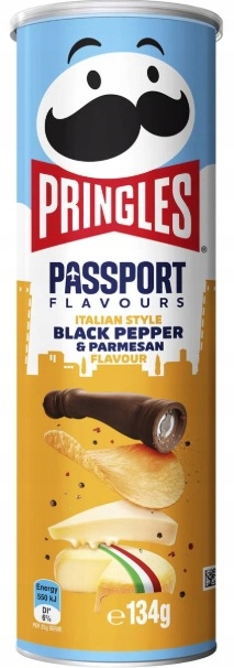 Pringles Passport Черный перец и сыр пармезан - ароматическая закуска, вдохновленная итальянской кухней. Хрустящие кусочки картофеля сочетаются с интенсивным вкусом черного перца и оттенком созревшего сыра пармезан. Это необычное сочетание специй и сырной отделки делает их идеальным выбором для любителей соленых и слегка острых закусок. Идеально подходит для обмена во время встреч с друзьями, вечера кино или в качестве быстрого перекуса в течение дня. Серия Passport - это ароматная поездка, вдохновленная кулинарными традициями разных стран.