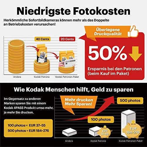 • Качество Kodak: технология Kodak 4Pass позволяет мгновенно печатать фотографии с высоким разрешением. Защитный ламинат сохраняет цвета ваших фотографий и защищает их от воды и отпечатков пальцев. Кроме того, печать фотографии занимает всего 50 секунд.