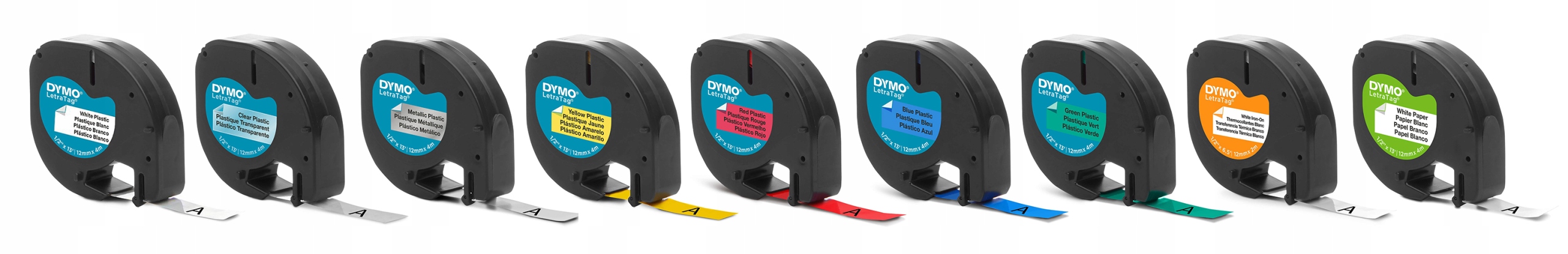- 5 лент LT, нейлон 12 мм х 2 м , черная надпись на белом фоне.