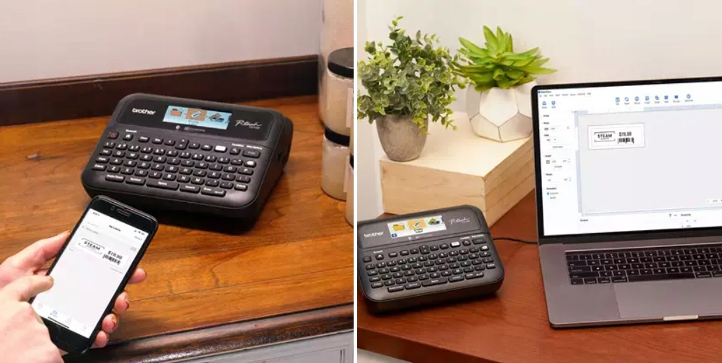 PT-D610 — идеальный партнер в офисе. Устройство поможет вам и вашим коллегам поддерживать порядок благодаря долговечным этикеткам. Идеально подходит для организации файлов и папок, управления активами, бейгами имен и обычными офисными вывесками. Подключитесь к компьютеру или смартфону через USB и Bluetooth, чтобы создавать и печатать этикетки где угодно.