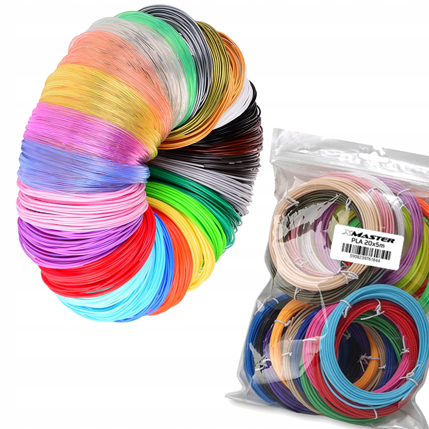 Нить изготовлены из PLA. . Они очень прочные. Конструкции из них долговечны. Пакет 20x5m означает, что в нем вы найдете 20 различных цветов, что позволит вам создавать красочные модели в неограниченном количестве цветов.