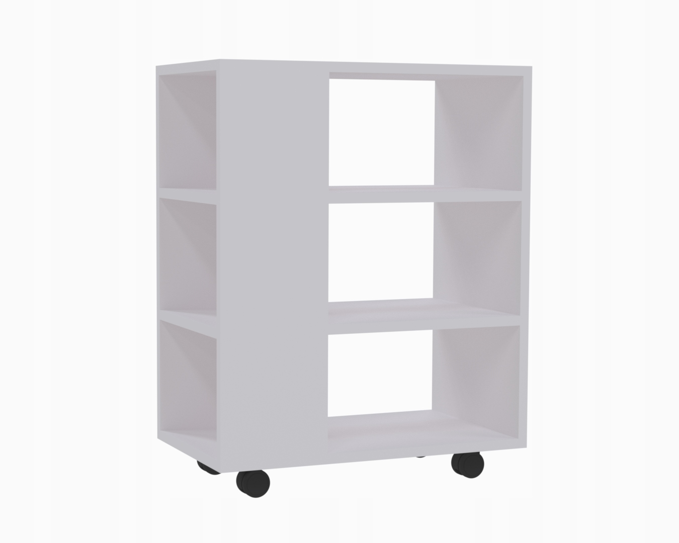 Он имеет 4 обрезиненных колеса, поэтому его можно легко перемещать. Боковые полки регулируются, поэтому вы можете свободно регулировать их высоту.