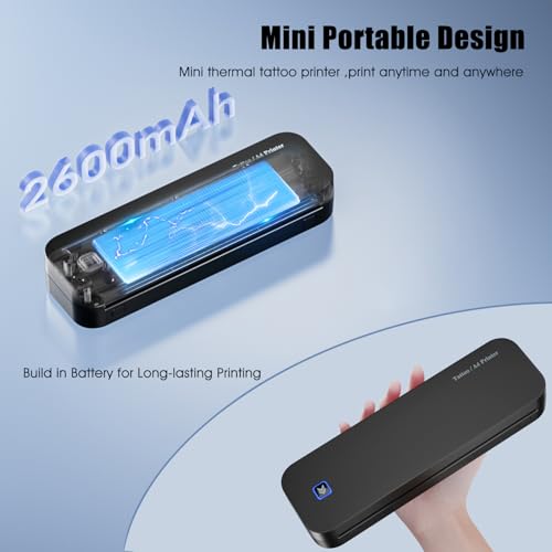 Новый текущий шаблон Для художников -татуировки он экономит 90% времени рисования и помогает быстро закончить работу. С одной стороны, благодаря тому, почему вы можете работать, не беспокоясь о времени автономной работы. Его можно использовать в течение 3-4 часов с полной зарядкой. Вы можете распечатать до 140 страниц с яркими картинами или текстом, используя одну зарядку. Низкий уровень шума, стабильная производительность, не требует туши или шаблон, более экономичной, чем другие традиционные татуировки с тепловыми принтерами